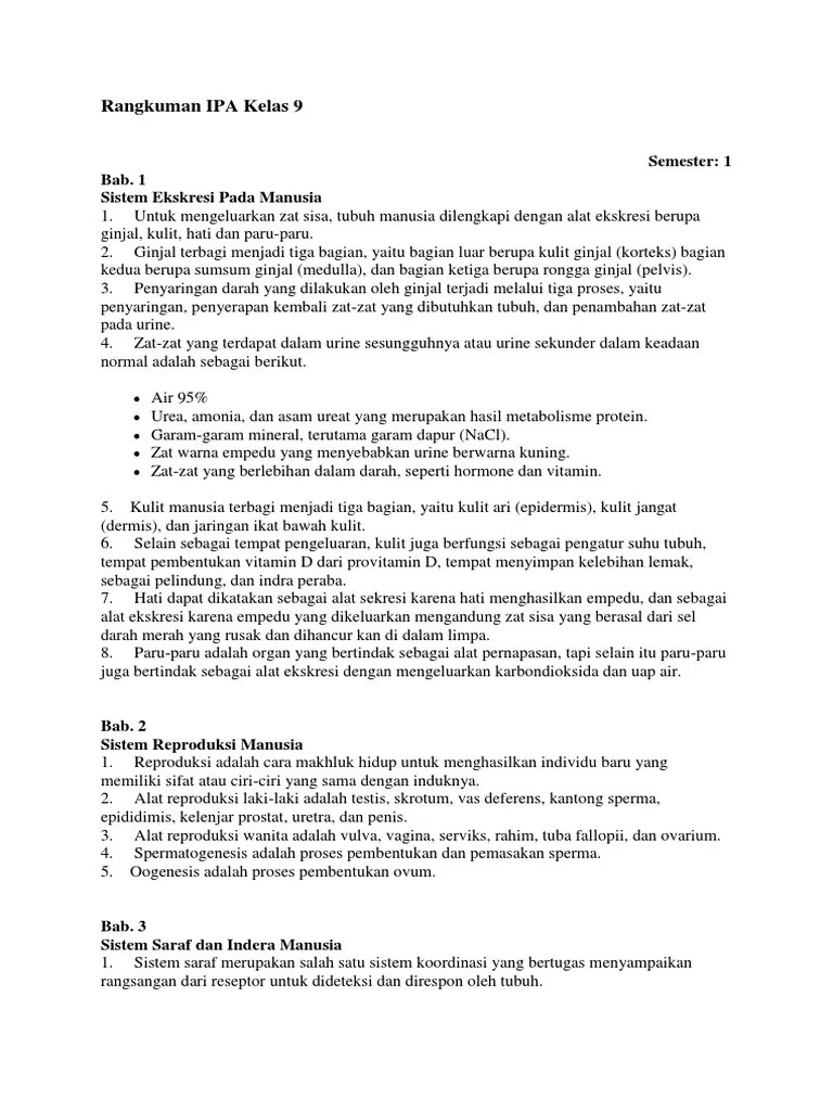 Dengan q, dan perubahan suhu dinyatakan dengan dt perubahan suhu, maka hubungan . #pelajaransmp #ipakelas9 video pembelajaran siswa kali ini berisi rangkuman materi pelajaran ipa kelas 9 kurikulum 2013 semester 1 dan 2. Materi pelajaran ipa kelas 7 smp/mts semester 1/2 lengkap bab 3 wujud zat. Rangkuman ipa kelas 9 smp/mts bab 6 kemagnetan dan pemanfaatannya dalam produk teknologi, ilmu pengetahuan alam kelas ix semester 2. Di bawah ini pernyataan yang tepat tentang hubungan materi genetik dengan pewarisan sifat adalah. Sifat manusia yang satu dengan yang lain . Bab 2 sistem perkembangbiakan tumbuhan dan hewan; Bab 3 pewarisan sifat pada makhluk hidup; Bab 1 sistem reproduksi manusia; Pembelahan mitosis merupakan tipe pembelahan sel yang menghasilkan 2 sel anakan yang mempunyai karakter . Manfaat dari inseminasi buatan antara lain efisien waktu, efisien biaya, dan juga dapat memperbaiki kualitas pada hewan. Bab 1 sistem reproduksi pada manusia. Daftar isi rangkuman materi ipa kelas 9 smp k13 revisi 2017.